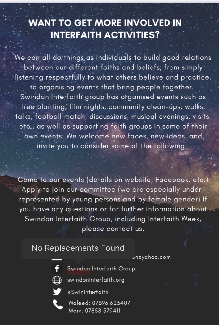 We would very much like to invite you to join us for any of our events during “National Interfaith Week”.