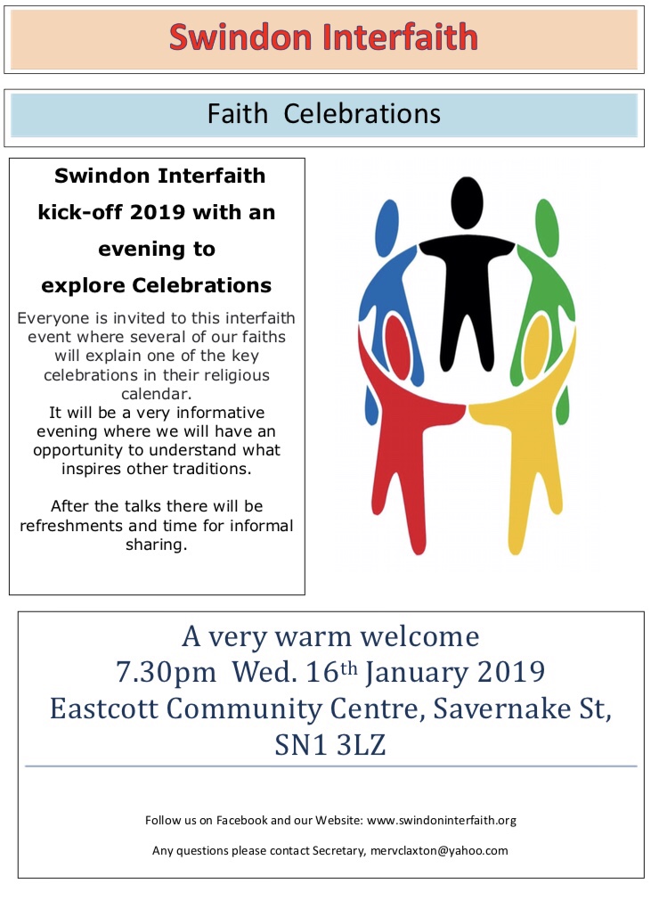 We would like to wish you a Happy New Year and are pleased to announce details of our first event in 2019, which will be an evening to explore the celebrations which are an important feature in the yearly schedule of all of our faiths.