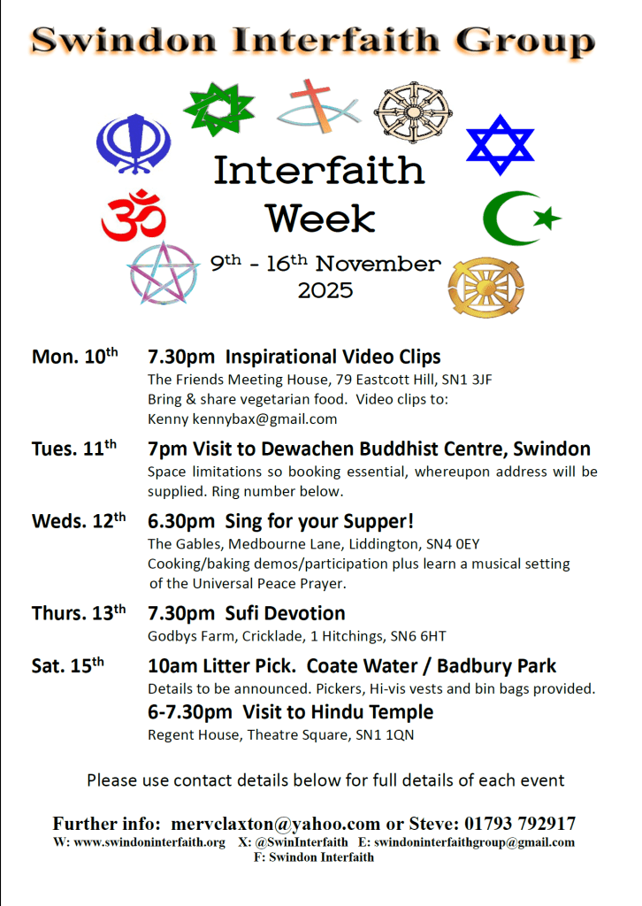9-16 Nov 2025 – Swindon Interfaith Week Celebrations – (please see poster for details)